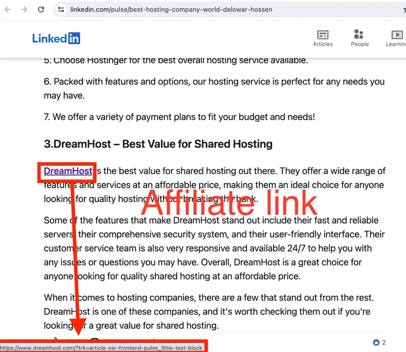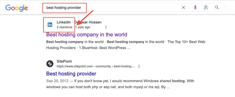 Hier ist ein Beispiel dafür, wie man LinkedIn für Parasite-SEO-Zwecke nutzen kann: