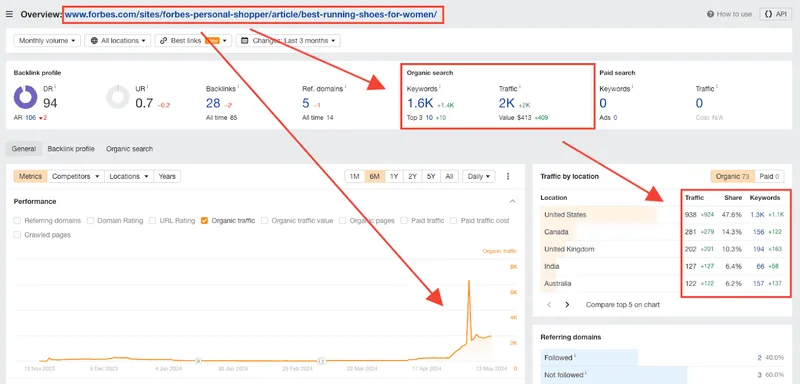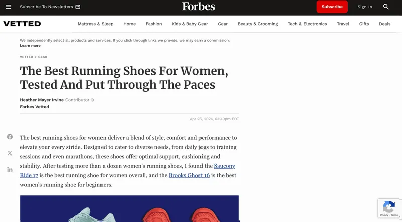 Zum Beispiel könnte jemand einen Artikel über „Die besten Laufschuhe für Frauen 2024“ schreiben und ihn auf Forbes veröffentlichen. Und ich mache keine Witze – der Beweis ist hier: