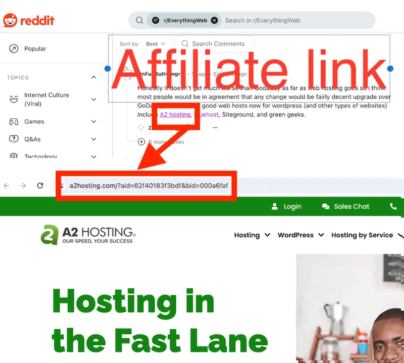 Jemand schrieb einen Beitrag in einem beliebten Forum, das nutzergenerierte Inhalte zulässt, und platzierte seinen Partnerlink: