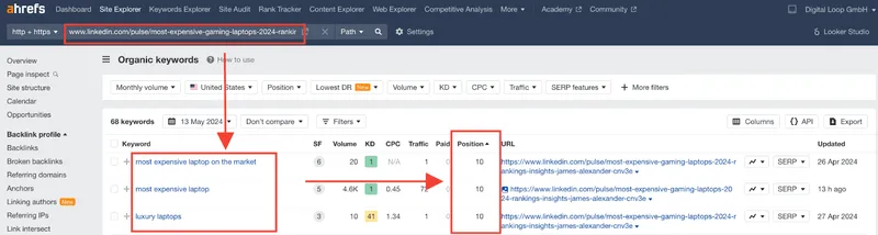 Der Artikel rangierte in den Top 10 für „teuerste Laptops auf dem Markt“ und „Luxus-Laptops“, weil er auf einer hochrangigen Website veröffentlicht wurde: