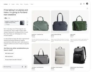 - ChatGPT Search: Offers interactive shopping carousels with prices and product links, and tests smooth purchasing processes.