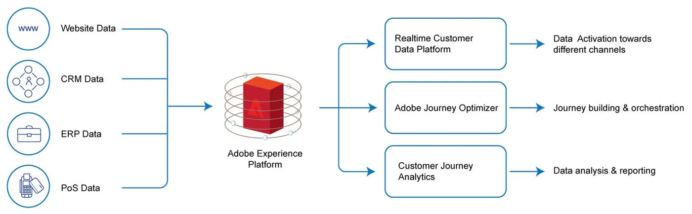 AEP itself can be considered as the data ingestion and storage part. It provides the data source connections, data lake, profile store, and the segmentation builder. To activate and utilize your data, Adobe offers three applications that can be licensed on top of AEP: Realtime Customer Data Platform (RT-CDP)Adobe Journey Optimizer (AJO) and Customer Journey Analytics (CJA)