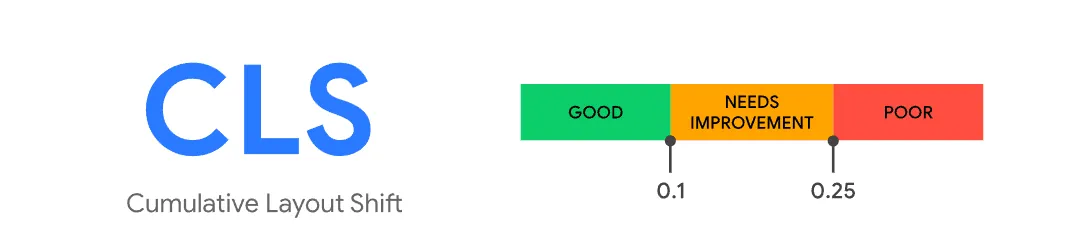 • Cumulative Layout Shift (CLS): This is an important web performance metric that measures the stability of a website’s visual elements. It’s part of Google’s Core Web Vitals and focuses on how much the visible content of the page unexpectedly shifts from one position to another during loading time, which can significantly impact the user experience. A CLS score below 0.1 is considered good (75th percentile), while a website with a score between 0.1 and 0.25 needs improvement. This means that out of 100 user experiences, the cumulative score should not exceed 0.1 in at least 75 cases.