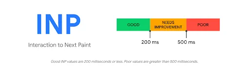 • Interaction to Next Paint (INP): In March 2024, Google replaced First Input Delay (FID) with Interaction to Next Paint (INP). Previously, FID only measured the time difference between the user’s initial input and the browser’s response time. INP now improves upon this limitation and captures the latency of all user interactions (clicks, taps, keystrokes) throughout the entire page session. This is a more comprehensive approach that better explains how the page responds over the entire session. 200 ms or less (75th percentile) is considered a good INP value. This means that at least 75 out of 100 user experiences should have an interaction time of 200 ms or less.