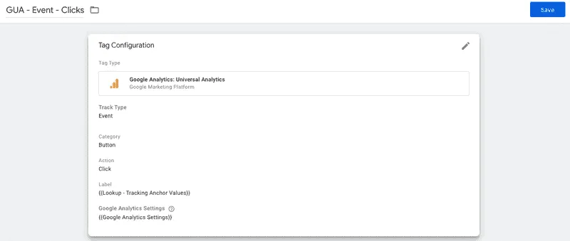 - At last, create a Google Analytics Event Tag. Based on your event-tracking structure, input a Category and Action (I prefer keeping the Event Category element-oriented and Event Action, well, action-oriented). As a label, input our Lookup Table Variable. Now set the above trigger and off to Preview & Debug Mode